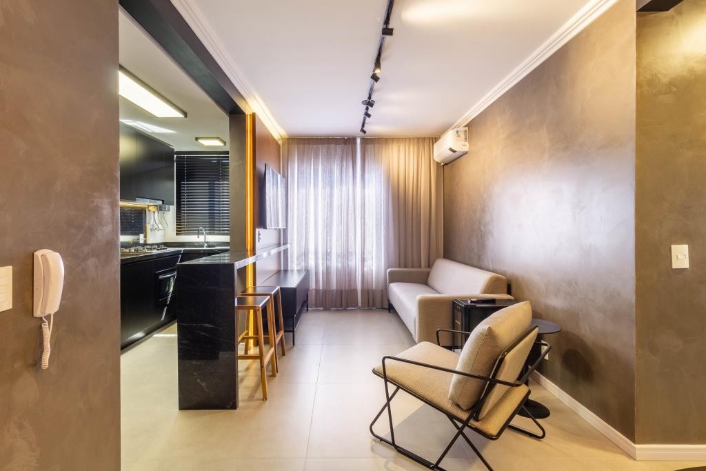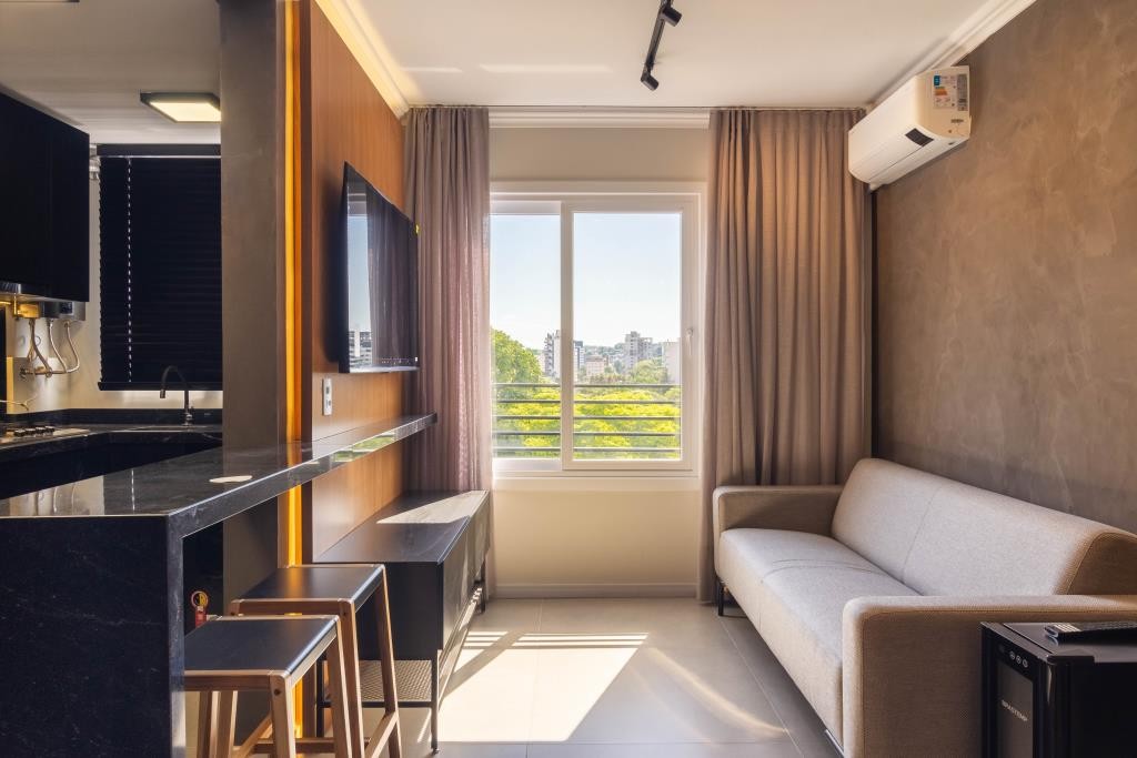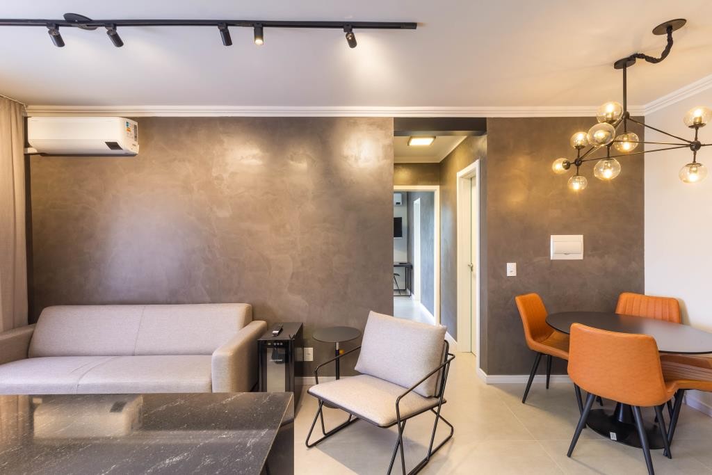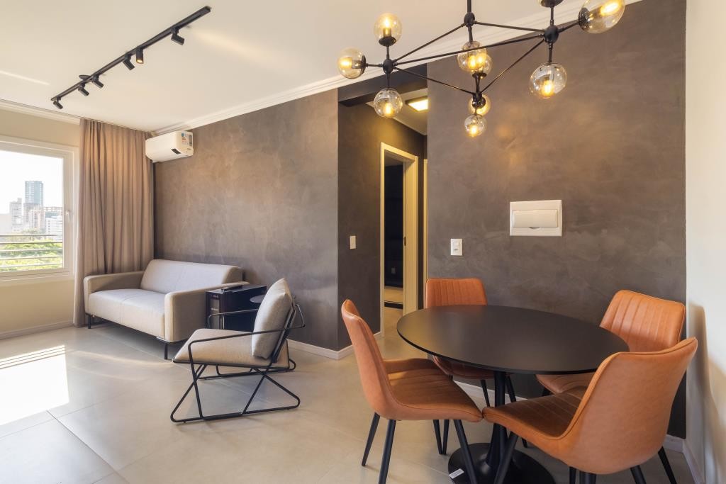 Apartamentos de 1 e 2 dormitórios com suíte, em região arborizada privilegiada no Centro de Novo Hamburgo. Interiores contemporâneos, com conceito em concreto aparente. Prédio com infraestrutura completa com jardim, salão de festas, pergolado playground e bicicletário.