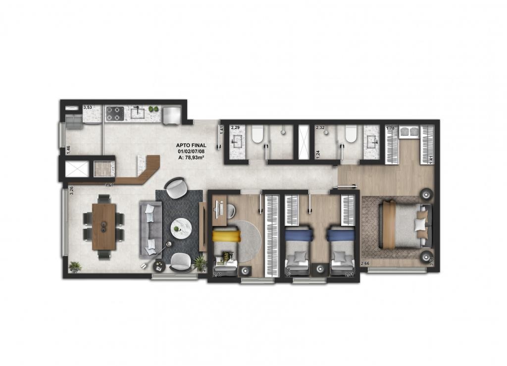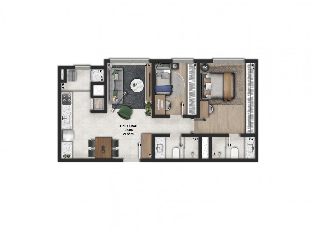Área Útil Apto: 63,43