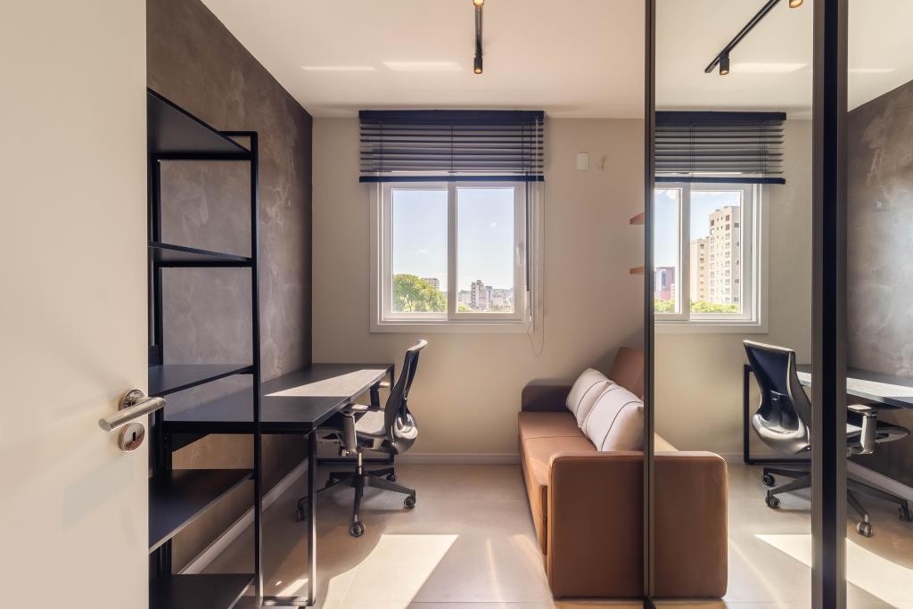 Apartamentos de 1 e 2 dormitórios com suíte, em região arborizada privilegiada no Centro de Novo Hamburgo. Interiores contemporâneos, com conceito em concreto aparente. Prédio com infraestrutura completa com jardim, salão de festas, pergolado playground e bicicletário.