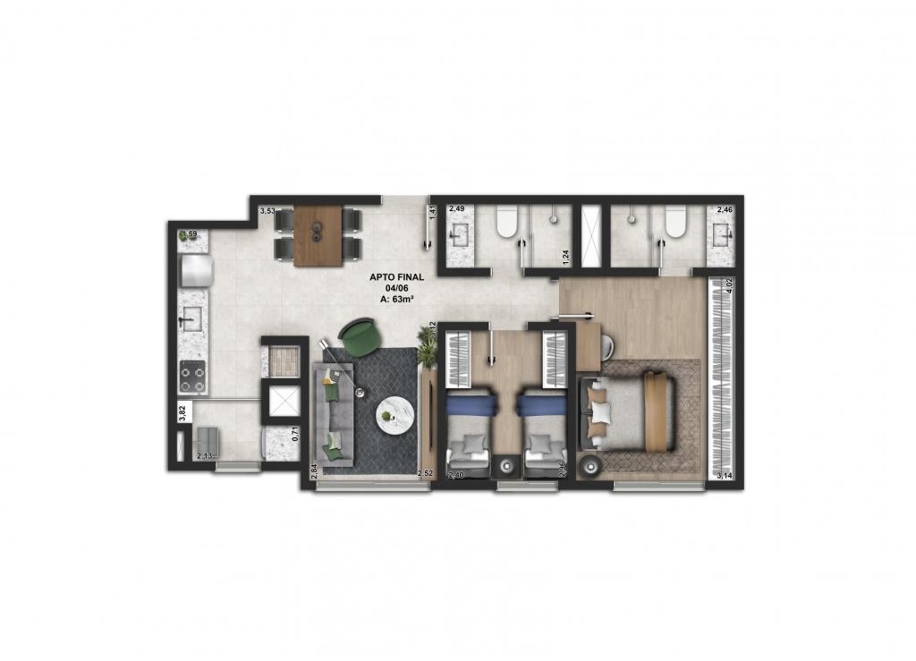 Área Útil Apto: 63,43